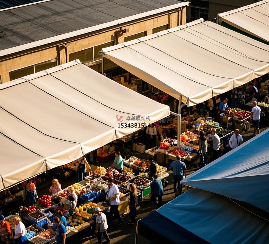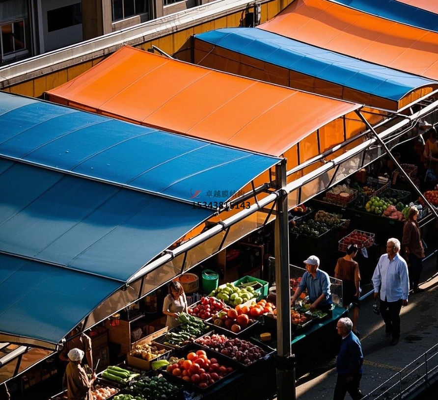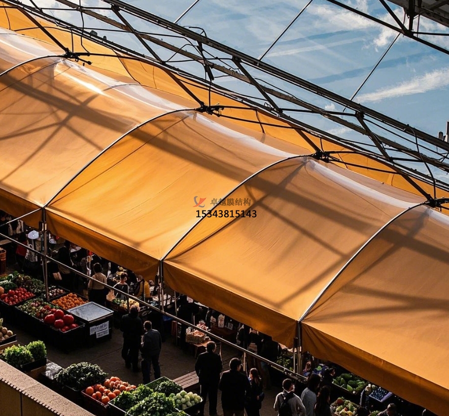 在城市的煙火氣味中,農(nóng)貿(mào)商場是不可或缺的存在,它承載著新鮮食材的匯聚與居民日常生活的快捷。但是,傳統(tǒng)農(nóng)貿(mào)商場頂棚在長期運(yùn)用中暴露出許多問題,如年久失修易漏雨、空間布局局促、外觀陳腐等。膜結(jié)構(gòu)頂棚的出現(xiàn),宛如一陣清風(fēng),為農(nóng)貿(mào)商場帶來了全新的生機(jī)與革新。