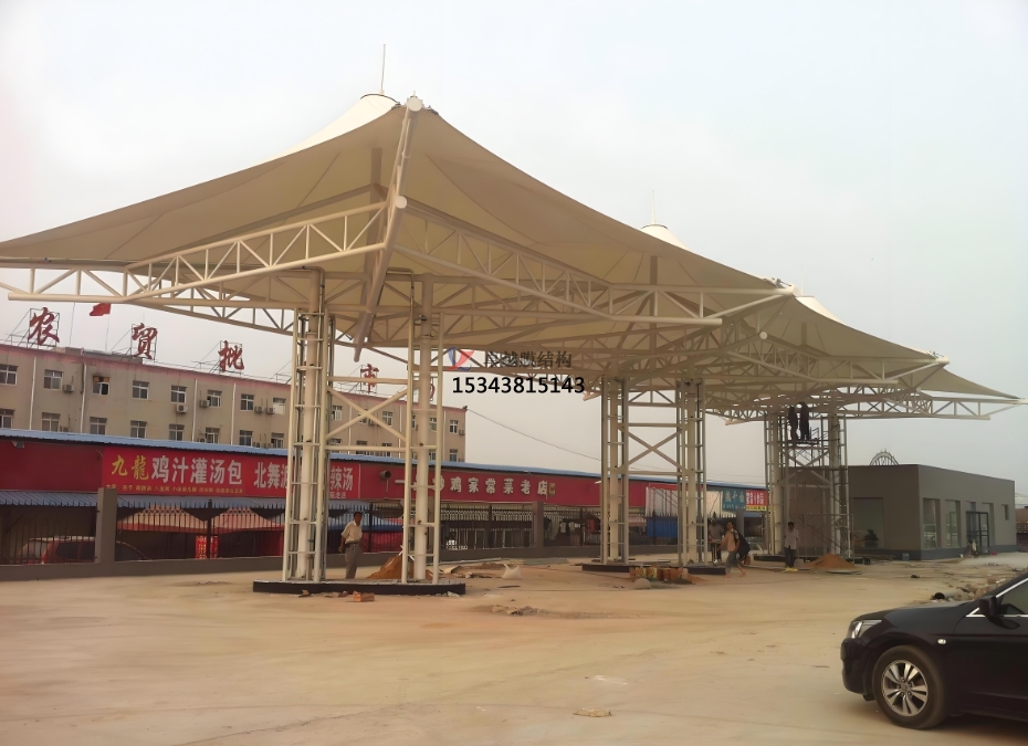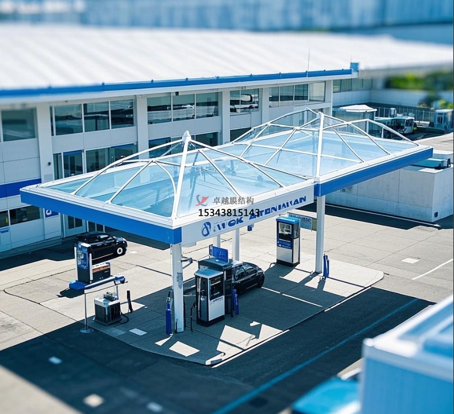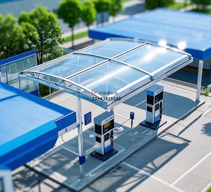 支 撐系統(tǒng)則根據(jù)加油站的規(guī)模和設(shè)計(jì)需求,選用鋼結(jié)構(gòu)或鋁合金結(jié)構(gòu)。鋼結(jié)構(gòu)支撐具有較高的強(qiáng)度和穩(wěn)定性,能夠適應(yīng)各種復(fù)雜的地形和氣候條件,通過(guò)合理的力學(xué)設(shè)計(jì),將膜材所承受的荷載均勻傳遞至基礎(chǔ)。鋁合金結(jié)構(gòu)則以其輕質(zhì)、耐腐蝕的特點(diǎn),在一些對(duì)重量有嚴(yán)格要求或環(huán)境較為惡劣的地區(qū)備受青睞,減輕了基礎(chǔ)的承載壓力,同時(shí)降低了維護(hù)成本。