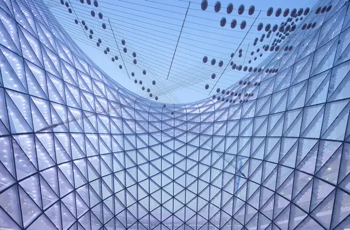 索膜結(jié)構(gòu)建筑特點優(yōu)勢有很多,不過也有一些局限性。主要是初始投資高、適用范圍受限和膜材易損幾點。索膜結(jié)構(gòu)的設(shè)計、材料和安裝成本相對較高。雖然適用于多種建筑類型,但對于一些有特殊功能要求如對密閉性、隔音性要求極高的建筑,可能不太適用。膜材雖有一定強度,但在尖銳物體穿刺或極端天氣條件下,可能出現(xiàn)破損撕裂。不過索膜結(jié)構(gòu)建筑在技術(shù)發(fā)展方面還是很有前途的。其包含施工創(chuàng)新和可持續(xù)性。在施工創(chuàng)新方面,液壓同步張拉、全過程仿真模擬(如ANSYS分析)保障復(fù)雜形態(tài)精度,索長誤差控制≤1/100008。在可持續(xù)性方面,膜材可回收利用,施工無揚塵噪音污染,契合綠色建筑理念。索膜結(jié)構(gòu)正重塑現(xiàn)代建筑邊界,從體育場館到文化地標(biāo),以輕盈之軀承載無限創(chuàng)意,成為21世紀(jì)“綠色建筑體系”的重要代表。