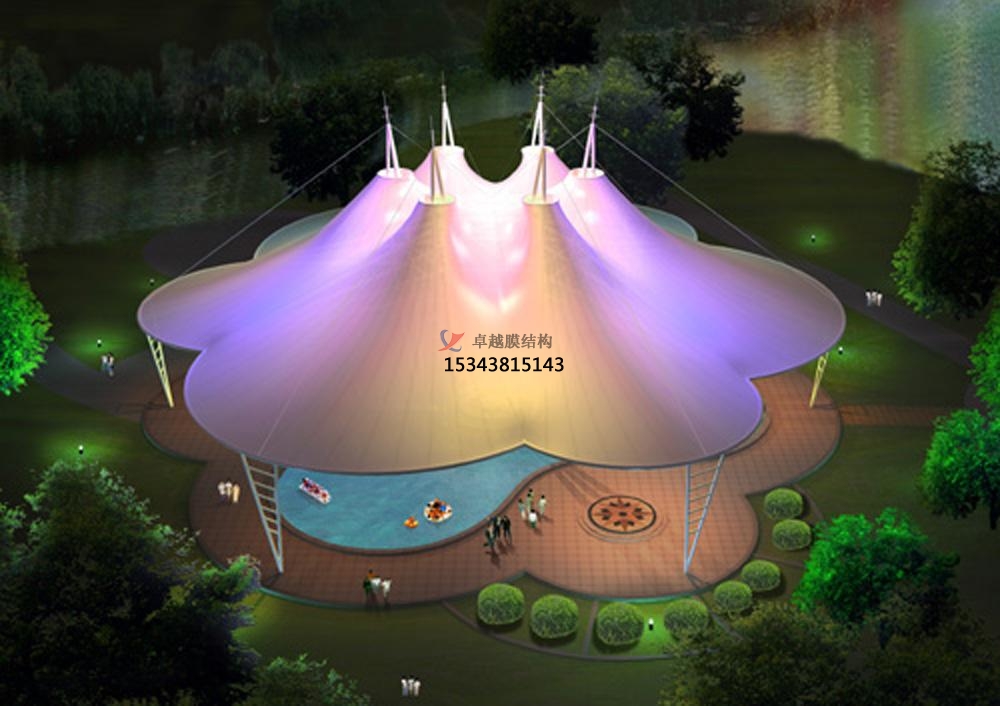 膜結(jié)構(gòu)景觀的保護(hù)和維護(hù)。膜材表面不應(yīng)與刀子、銳器接觸,以免劃破及磨傷膜材表面。一旦發(fā)現(xiàn)膜材被劃破、嚴(yán)重磨傷等現(xiàn)象時(shí),應(yīng)及時(shí)采取有效措施以免磨傷更加嚴(yán)重,同時(shí)通知廠商派人修復(fù),鋼構(gòu)件表面不得遭受硬物打擊與劃傷,不得接觸各種酸性、堿性和有機(jī)溶劑。