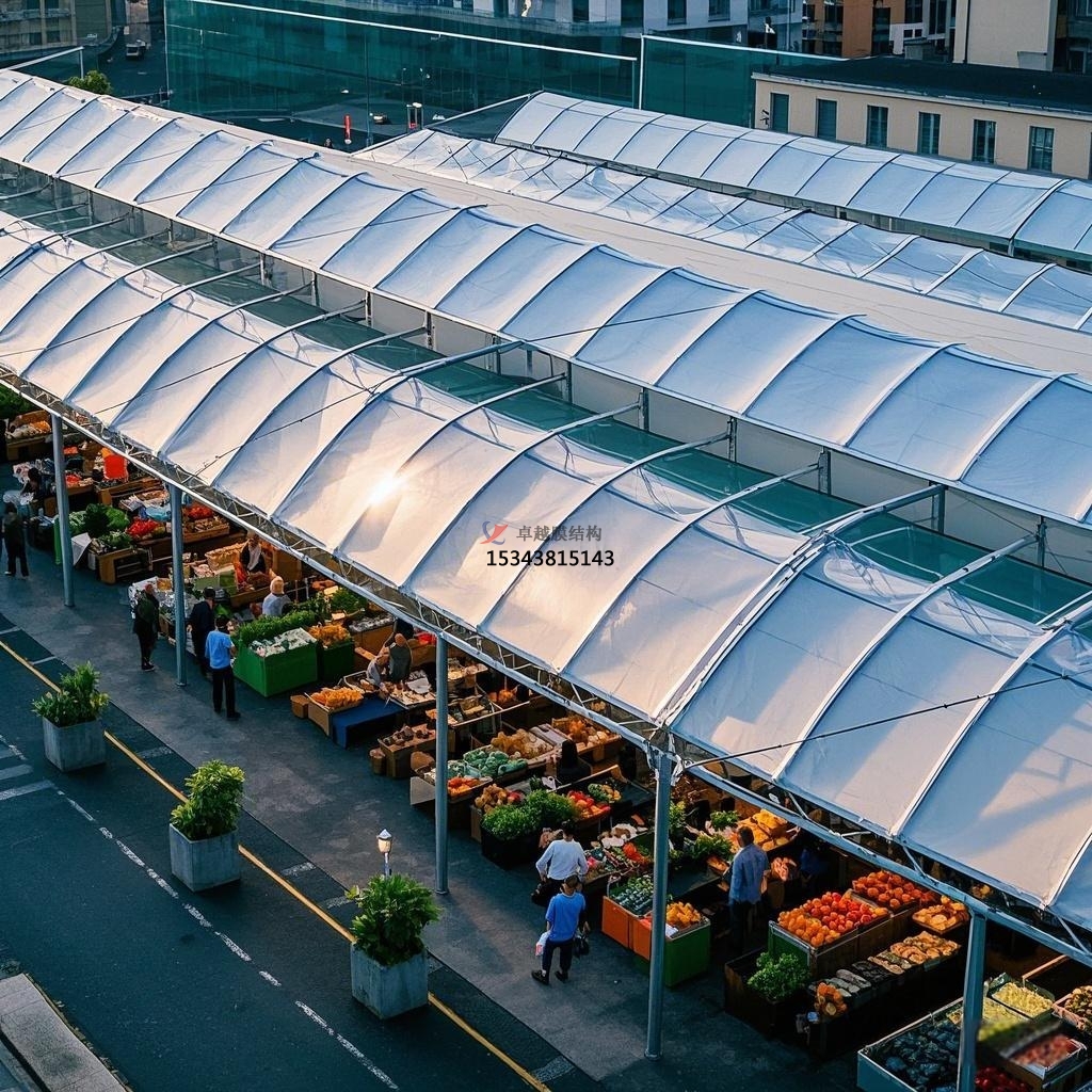 膜結(jié)構(gòu)同樣為農(nóng)貿(mào)市場的攤主們帶來了諸多好處。寬敞、明亮的攤位空間,有利于商品的陳列和展示,能夠吸引更多顧客的關(guān)注。穩(wěn)定的結(jié)構(gòu)和良好的環(huán)境條件,減少了商品因自然因素(如陽 光直射、雨水侵蝕等)造成的損耗。而且,市場整體形象的提升和顧客流量的增加,也為攤主們帶來了更多的商業(yè)機(jī)會(huì),有助于提高他們的經(jīng)營效益。?