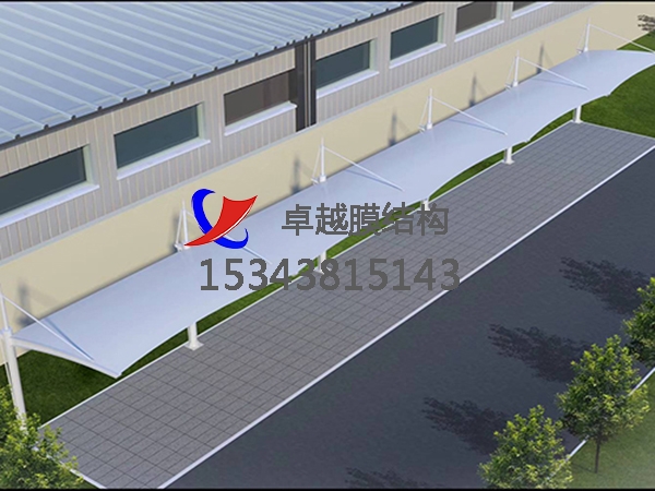 膜結(jié)構(gòu)車棚PVC材料的主要特點是強度低、彈性大、易老化、徐變大、自潔性差,但價格便宜,容易加工制作,色彩豐富,抗折疊性能好。為改善其性能,可在膜結(jié)構(gòu)車棚表面涂一e799bee5baa6e997aee7ad94e4b893e5b19e31333433626562層聚四氟乙烯涂層,提高其抗老化和自潔能力,其壽命可達到15年左右。