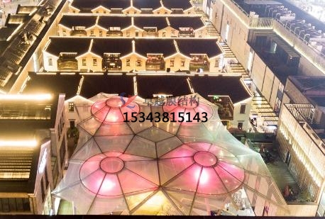 工程特點:該項目是國內好的單層ETFE加雙層氣枕膜完美嵌合的景觀雨棚建筑,利用ETFE膜材的高透光高自潔性以及雙層氣枕的隔熱能力,雨棚在具有遮陽擋雨功能的同時還可以實現自然采光,行人沒有傳統(tǒng)密封建筑的束縛感;另一方面,ETFE膜結構建筑是當代更新的建筑應用形式之一,工程高度定制,顏值高,具有好的性,天生自帶聚集人氣光環(huán)。