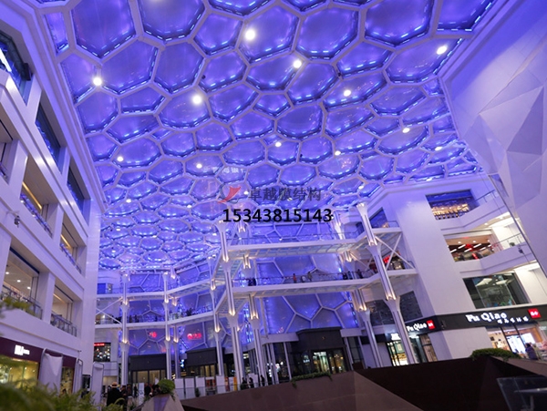 ?。?)顏色和透光性:ETFE膜材通常為無(wú)色透明狀,也可以做成白色、藍(lán)色或者其他顏色。根據(jù)需要也可以在無(wú)色透明或者其他顏色膜材上印制各種圖案。