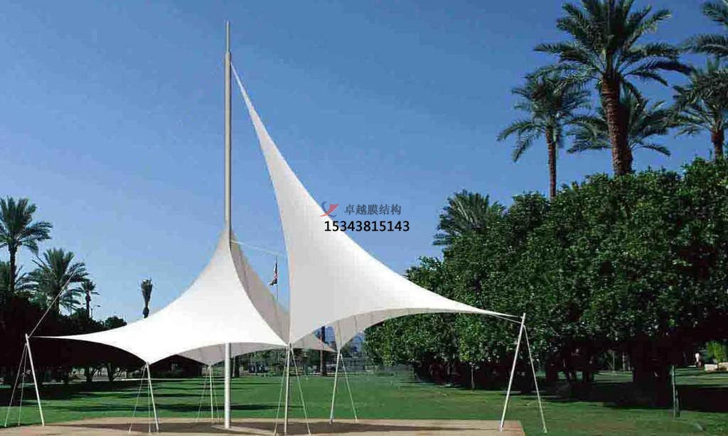 1,保證膜面有足夠的曲率,張拉膜景觀廠家以獲得較大的剛度和美學(xué)效果;