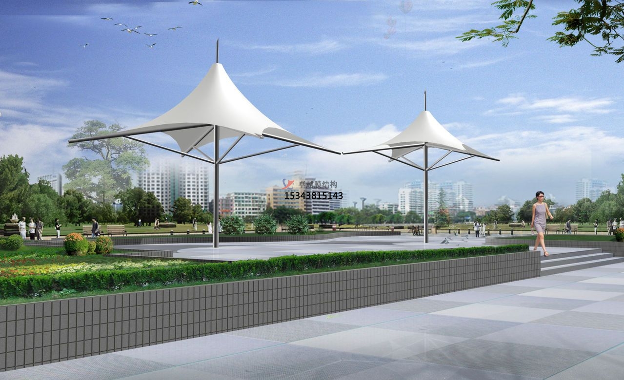 1.膜結(jié)構(gòu)用來做公園小品建筑,為環(huán)境裝飾更添藝術(shù)色彩.帶給人們不同的環(huán)境轉(zhuǎn)換感和新鮮感;