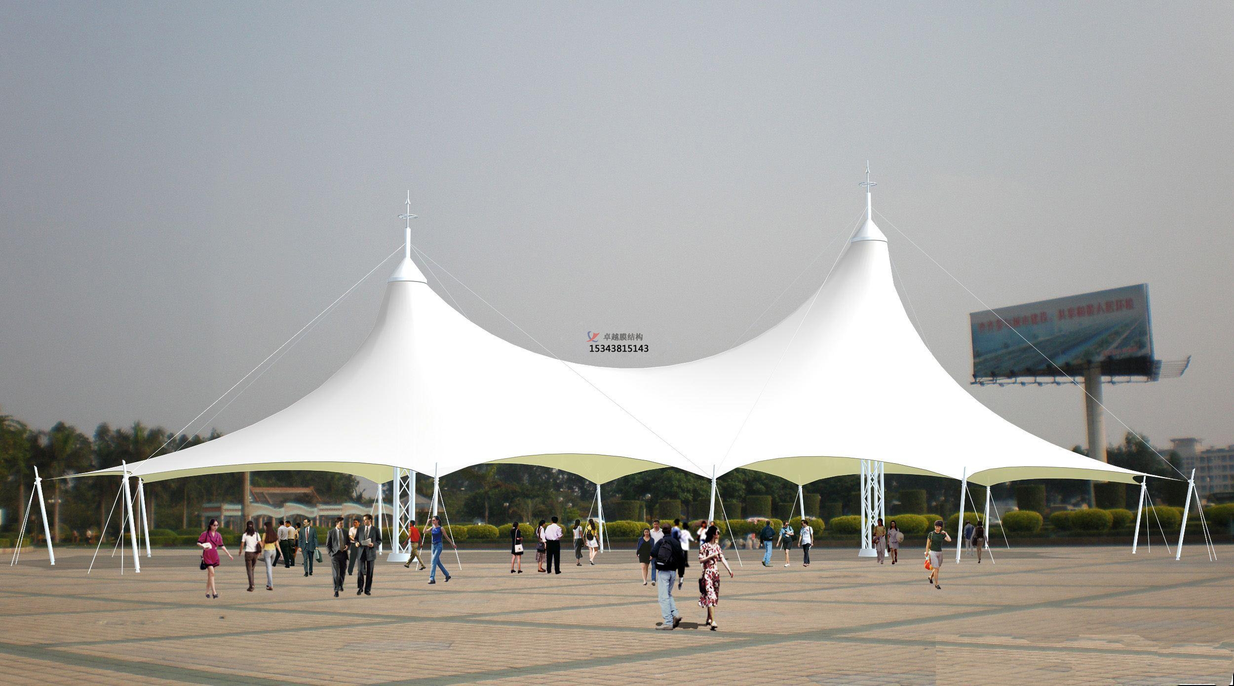 膜結(jié)構(gòu)景觀是建筑結(jié)構(gòu)中更新發(fā)展起來(lái)的一種形式,它以性能優(yōu)良的織物為材料,或是向膜內(nèi)充氣,由空氣壓力支撐膜面,或是利用柔性鋼索或剛性支撐結(jié)構(gòu)將面繃緊,從而形成具有一定剛度、能夠覆蓋大跨度空間的結(jié)構(gòu)體系。自從上世紀(jì)七十年代以來(lái),膜結(jié)構(gòu)景觀在國(guó)外已逐漸應(yīng)用于體育建筑、商場(chǎng)、展覽中心、交通服務(wù)設(shè)施等大跨度建筑中。膜結(jié)構(gòu)景觀已成為結(jié)構(gòu)設(shè)計(jì)選型中的一個(gè)主要方案。