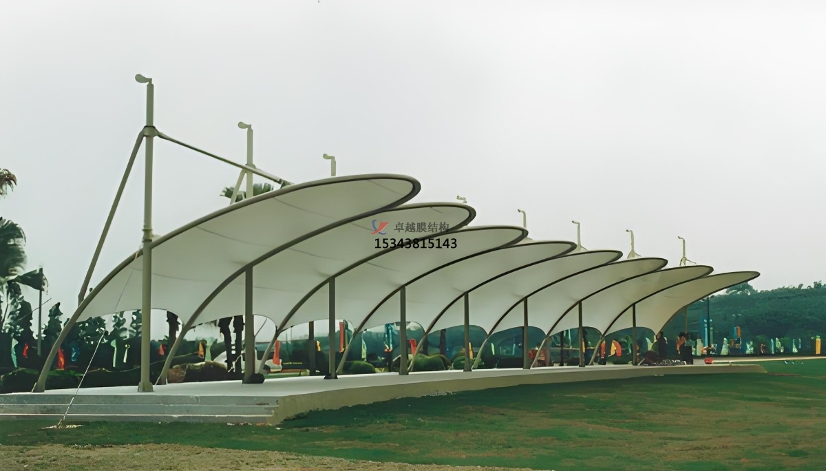 1、高強度與輕重量:膜結(jié)構(gòu)所采用的材料是高強度織物材料,經(jīng)緯交織,雙面PVDF涂層,耐久性長達10年以上。同時,其重量輕,相當(dāng)于普通鋼結(jié)構(gòu)屋面的1/10,能滿足大跨度的要求,非常適合高爾夫球場發(fā)球臺等大面積區(qū)域的建設(shè)。