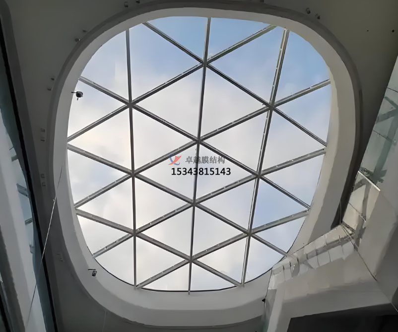 ETFE(乙烯 - 四氟乙烯共聚物)膜作為一種革命性的建筑材料,憑借其獨(dú)特的性能在現(xiàn)代建筑中占據(jù)重要地位。其密度僅為玻璃的 1%,卻擁有高達(dá) 500N/5cm 的拉伸強(qiáng)度,能夠顯著降低建筑主體結(jié)構(gòu)荷載,尤其適合大跨度空間。透光率高達(dá) 95% 的特性使其成為自然光利用的理想選擇,配合絲網(wǎng)印刷技術(shù)可靈活調(diào)節(jié)遮陽與采光比例。此外,ETFE 膜的耐候性極強(qiáng),可在 - 200℃至 150℃的極端環(huán)境中穩(wěn)定服役,使用壽命超過 25 年,且具備自清潔功能,減少維護(hù)成本。