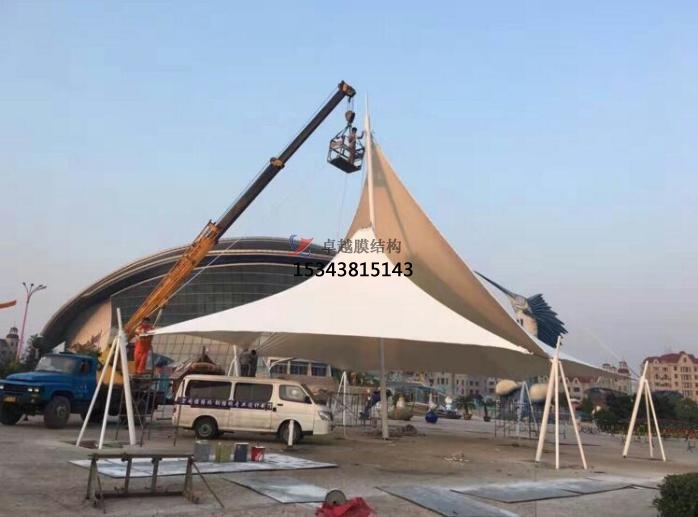 透光性是現(xiàn)代商業(yè)廣場雨棚搭建更被廣泛認可的特性之一。膜材的透光性可以為建筑提供所需的照度,這對于建筑節(jié)能十分重要。對于一些要求光照多且亮度高的商業(yè)建筑等尤為重要。通過自然采光與人工采光的綜合利用,膜材透光性可為建筑設計提供更大的美學創(chuàng)作空間。夜晚,商業(yè)廣場雨棚搭建變成了光的雕塑。