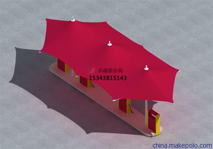 張拉膜雨棚/加氣站頂蓋主要采用鋼結(jié)構做骨架支撐結(jié)構,高自潔建筑膜材做屋面材料防水材料,設計美觀大方,結(jié)構安全穩(wěn)定,使用壽命可達15年到30年。廣泛應用在于各類大小加油站和加氣站。卓越張拉膜雨棚工程是較早年開展張拉膜設計施工的專業(yè)廠家,擁有各類張拉膜設計施工總承包資質(zhì),現(xiàn)在為大家介紹一下我司在鄭州周邊地區(qū)完工的一批張拉膜雨棚工程案例,我司先后在鄭州附近地區(qū)完工了中國石化鄭州柳林加油站張拉膜雨棚頂蓋、鄭州東服務區(qū)中國石化加油站張拉膜雨棚遮陽篷、中國石油加油站(天然氣股份有限公司河南鄭州第十加油站)張拉膜雨棚等一批完工項目,給大家簡介一下: