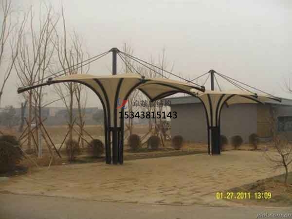膜結(jié)構(gòu)的柔性使其在任一荷載作用下均以更有利的形態(tài)承載。當然,結(jié)構(gòu)的布置和形狀要根據(jù)荷載情況來進行設計和調(diào)整。設計要確何膜面與其輔助結(jié)構(gòu)協(xié)調(diào)工作,以避免力在膜面或輔助結(jié)構(gòu)上集中而達結(jié)構(gòu)破壞的臨界值。