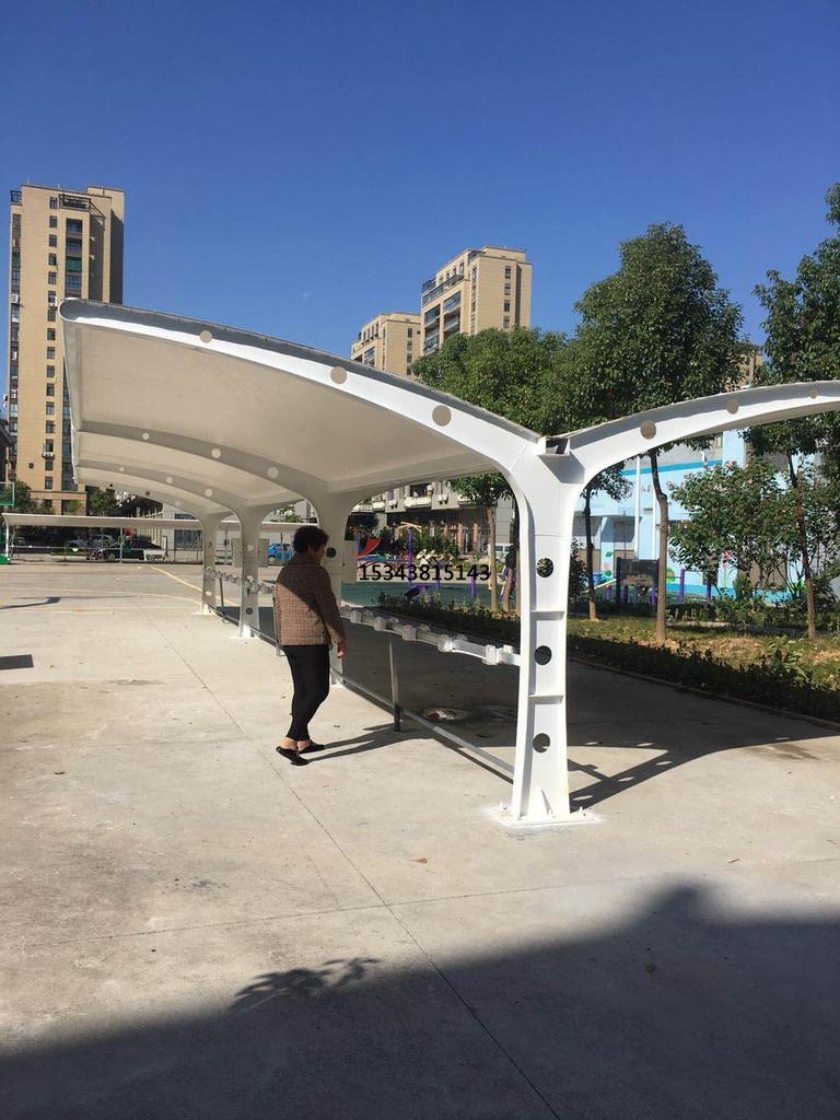 3、膜結(jié)構(gòu)充電站頂部封板采用茶色(顏色可挑選)陽光板封頂,與車棚整體骨架用壓條鉚接固定,耐酸堿腐蝕,有足夠強(qiáng)度對棚內(nèi)車輛起到保護(hù)作用。