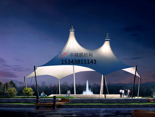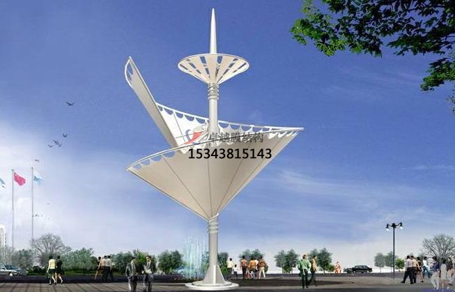 2、一個城市的中心區(qū)反映一個城市的地理風貌和民族風情,同時,也是一個城市文化發(fā)展程度的標志。而景觀設計要求其具有廣泛的可讀性、雅俗共賞,既有超凡脫俗的藝術價值,又能使大眾喜聞樂見與大眾息息相通。張拉膜以其輕盈飄逸的造型、柔美并帶有力量的曲線和大跨度和大空間的鮮明個性和標識性,應用于城市小品設計中。