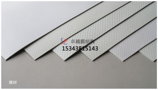 膜材透光性是由它的基層纖維、涂層及其顏色所決定的。標準膜材的光譜透射比在10%~20%之間,有的膜材的光譜透射比可以達到40%,而有的膜材則是不透光的。膜材的透光性及對光色的選擇可以通過涂層的顏色或是面層顏色來調(diào)節(jié)。通過膜材和透光保溫材料的適當組合,可以使含保溫層的多層膜具有透光性。即使光譜透射只有幾個百分點,膜屋面對于人眼來說依然是發(fā)亮和透光的,具有輕型屋面的觀感。