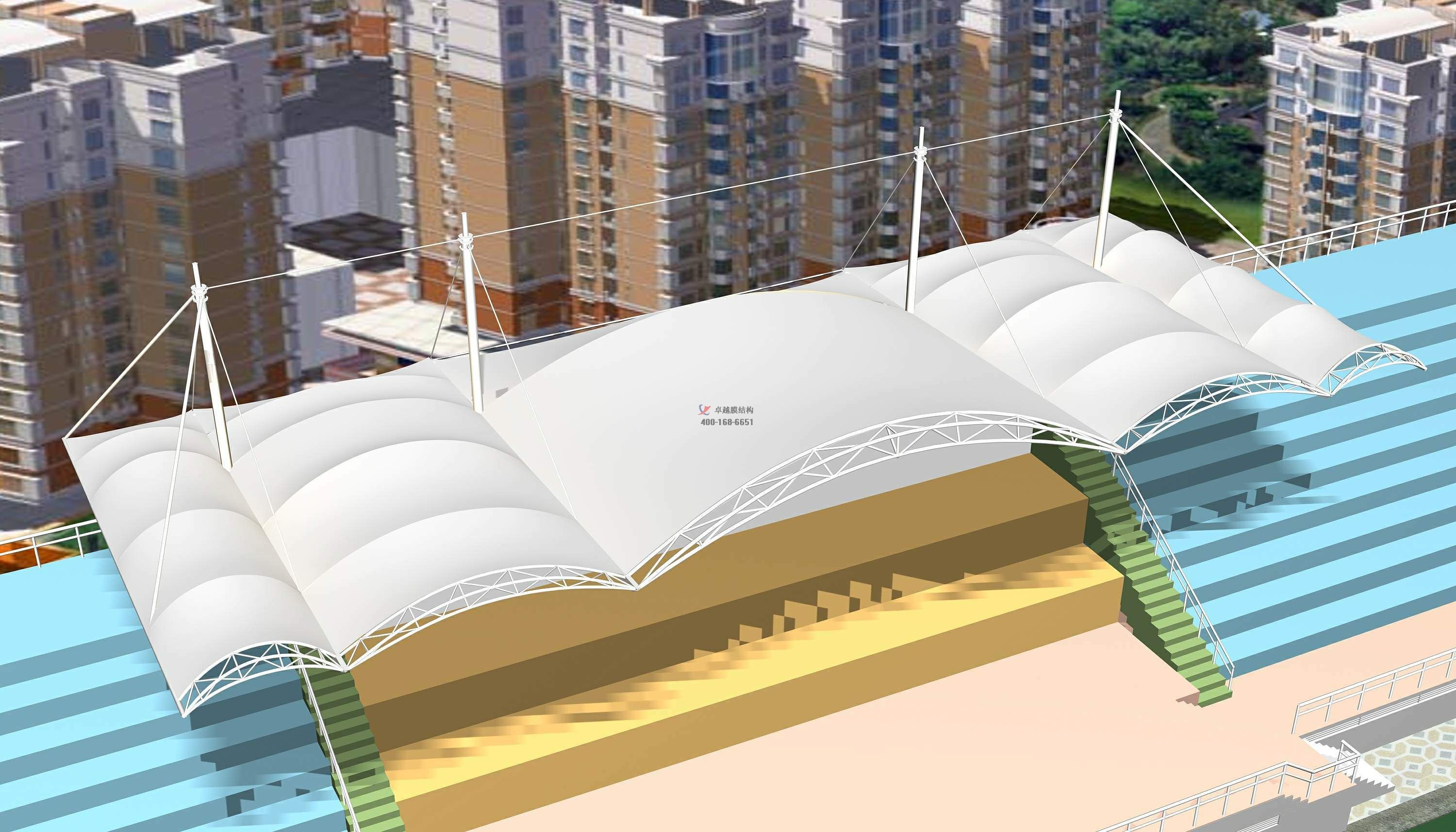 一、膜結(jié)構(gòu)看臺(tái)已經(jīng)是膜結(jié)構(gòu)材料多年來一直應(yīng)用的一個(gè)工程領(lǐng)域技術(shù)成熟。