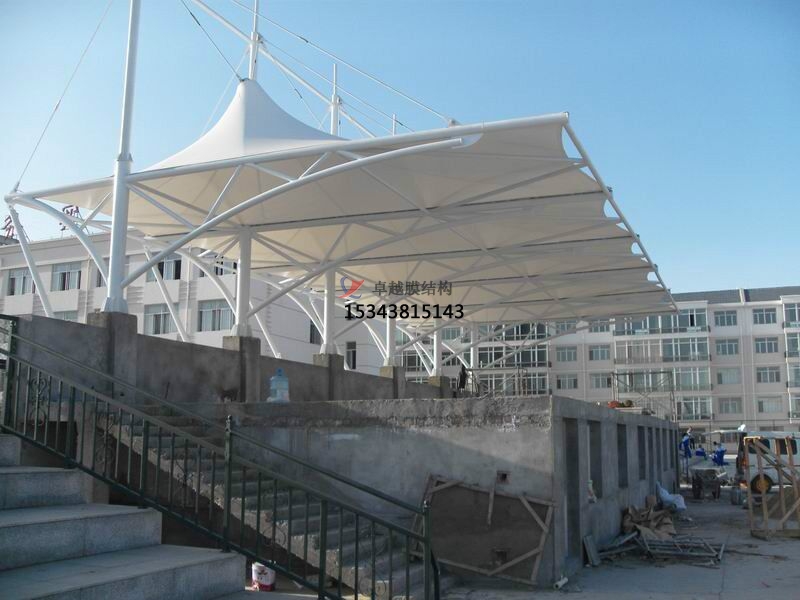 張拉膜看臺(tái)主要用于各類(lèi)地方體育場(chǎng)主席臺(tái)雨棚,各類(lèi)學(xué)校體育場(chǎng)看臺(tái)雨棚遮蓋,我公司是國(guó)內(nèi)較早從事大懸挑張拉膜結(jié)構(gòu)看臺(tái)設(shè)計(jì)施工的專(zhuān)業(yè)廠家,下面介紹一下我們?cè)谖錆h周邊縣市完工的一些張拉膜看臺(tái)設(shè)計(jì)施工案例,我公司先后在武漢周邊承接了武漢外國(guó)語(yǔ)學(xué)??磁_(tái)雨棚、武漢市建設(shè)學(xué)校張拉膜張拉膜看臺(tái)罩棚、武漢楓葉國(guó)際學(xué)校張拉膜看臺(tái)遮陽(yáng)棚張拉膜看臺(tái)遮陽(yáng)棚等設(shè)計(jì)施工項(xiàng)目,簡(jiǎn)介如下: