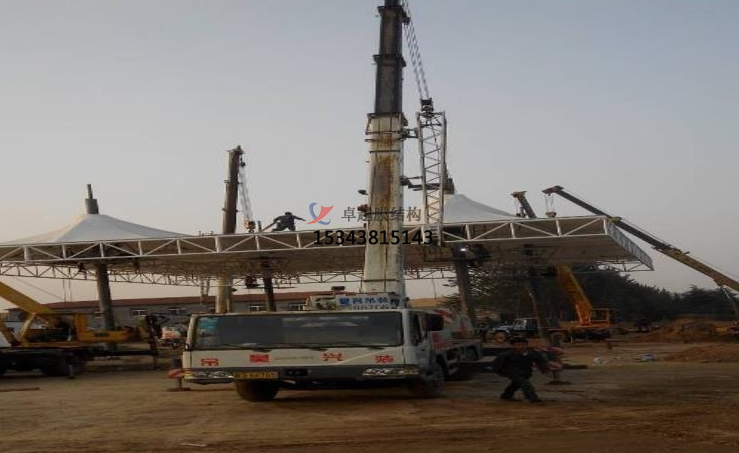 三:自潔性-自始至終保持潔白美麗:膜材料具有極高的非粘著性,加油站膜結(jié)構(gòu)看臺,在我們?nèi)粘J褂貌徽村仌r就可以體會到這一特性。膜材料的表面不僅不易附著臟物及灰塵,而且其表面的灰塵會被雨水自然地沖洗干凈,所以經(jīng)過長年使用仍然保持外觀的潔凈及室內(nèi)的美觀。