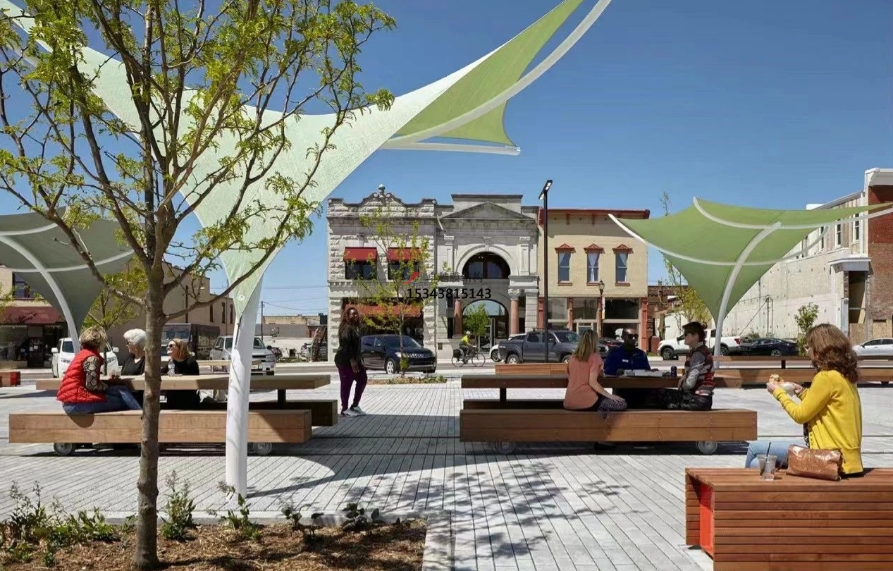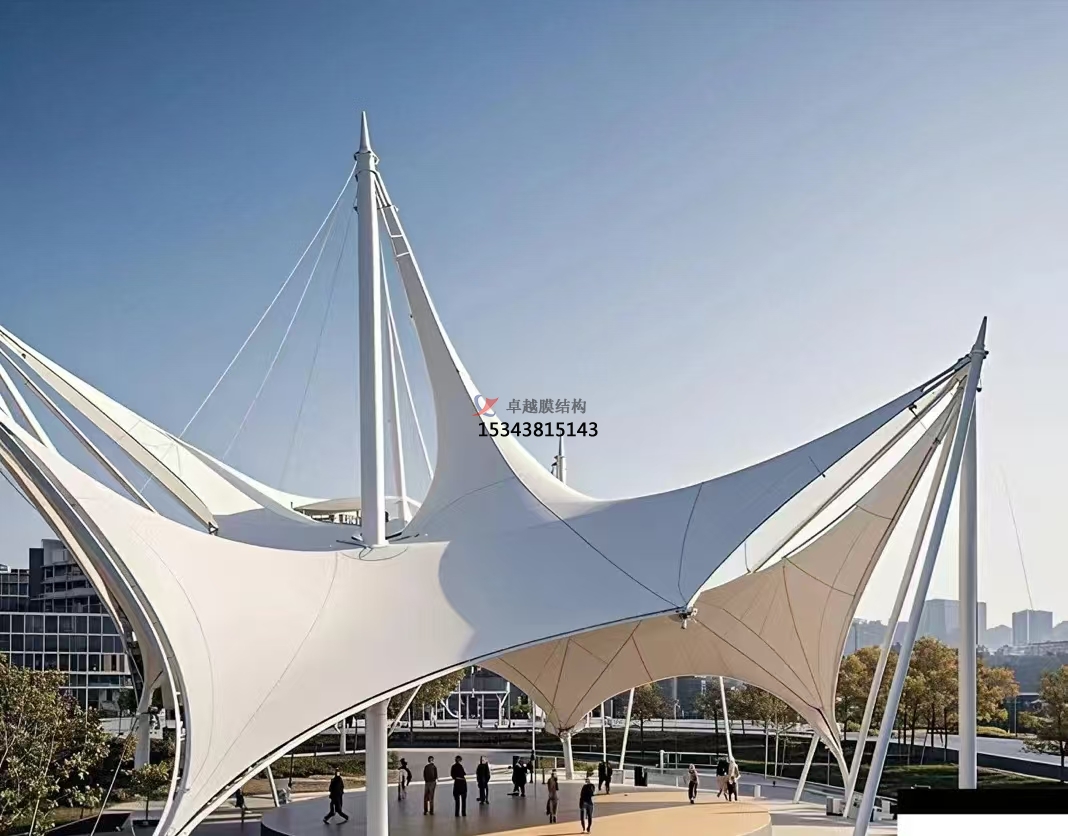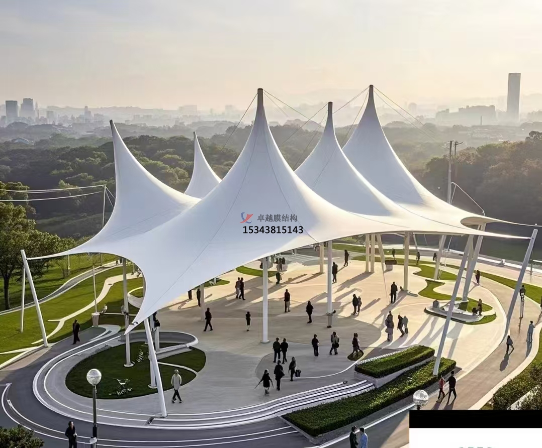 景觀膜結(jié)構(gòu)的核心在于其采用的薄膜材料。這些材料具有高強度、輕質(zhì)、透光性好、耐候性強等顯著特點,使得膜結(jié)構(gòu)建筑能夠展現(xiàn)出輕盈靈動的姿態(tài),與自然環(huán)境和諧共生‌1。通過精細的裁剪、焊接和涂裝等工藝流程,設(shè)計師們將這些薄膜材料轉(zhuǎn)化為一道道亮麗的風(fēng)景線,為城市空間增添了無限的藝術(shù)氣息‌。