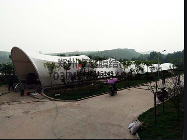 膜結(jié)構(gòu)是用高強度柔性薄膜材料經(jīng)受其它材料的拉壓作用而形成的穩(wěn)定曲面,能承受-定外荷載的空間結(jié)構(gòu)形式。其造型自由、輕巧、柔美,充滿力量感,阻燃、制作簡易、安裝快捷、節(jié)能、易于、使用安全等優(yōu)點,因而使它在世界各地受到廣泛應用。