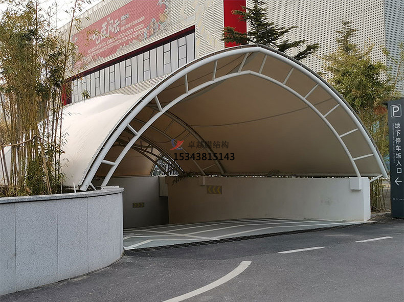 該小區(qū)的入口通道采用了雙層膜結(jié)構的設計,外層膜采用高強度聚酯纖維材料,內(nèi)層膜采用聚乙烯材料,兩層膜之間填充了聚氨酯泡沫材料,具有優(yōu)秀的實用性和功能性,為居民的停車提供了便利。在膜材的選擇上,采用了環(huán)保材料,符合現(xiàn)代環(huán)保理念。此外,自動化控制系統(tǒng)的使用,也使得遮陽雨棚更好的利用。以保證入口通道的舒適度和安全性。整個膜結(jié)構造型簡潔、大方,線條流暢,呈現(xiàn)出現(xiàn)代科技感。膜結(jié)構的使用不僅提高了小區(qū)的安全性能,還增加了小區(qū)的景觀價值,成為小區(qū)的一大特色。