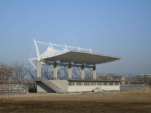 張拉膜看臺(tái)主要用于各類地方體育場(chǎng)主席臺(tái)雨棚,各類學(xué)校體育場(chǎng)看臺(tái)雨棚遮蓋,我公司是國(guó)內(nèi)較早從事大懸挑張拉膜結(jié)構(gòu)看臺(tái)設(shè)計(jì)施工的專業(yè)廠家,下面介紹一下我們?cè)趯幉ㄊ兄苓吙h市完工的一些張拉膜看臺(tái)設(shè)計(jì)施工案例,我公司先后在寧波周邊承接了寧波職業(yè)技術(shù)學(xué)院張拉膜看臺(tái)雨棚、寧波城市職業(yè)技術(shù)學(xué)院張拉膜看臺(tái)罩棚、浙江醫(yī)藥高等??茖W(xué)校張拉膜看臺(tái)遮陽(yáng)棚等設(shè)計(jì)施工項(xiàng)目,簡(jiǎn)介如下: