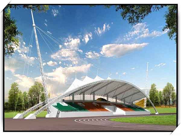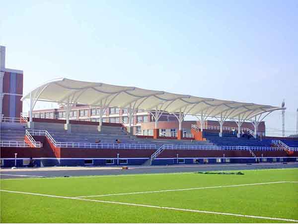 張拉膜看臺主要用于各類地方體育場主席臺雨棚,各類學校體育場看臺雨棚遮蓋,我公司是國內(nèi)較早從事大懸挑張拉膜結(jié)構(gòu)看臺設計施工的專業(yè)廠家,下面介紹一下我們在南昌市周邊縣市完工的一些張拉膜看臺設計施工案例,我公司先后在南昌周邊承接了江西水利職業(yè)學院張拉膜看臺雨棚、江西衛(wèi)生職業(yè)學院張拉膜看臺罩棚、江西外語外貿(mào)職業(yè)學院張拉膜看臺遮陽棚等設計施工項目,簡介如下: