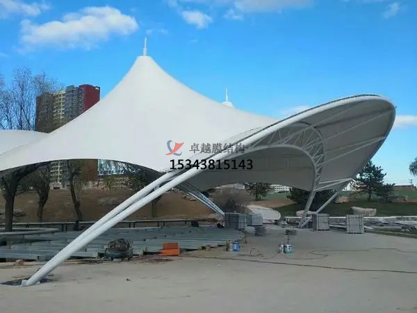 5.抵御天氣的影響:舞臺(tái)膜屋面的一個(gè)重要作用就是抵御各種天氣變化(如日曬、雨淋、風(fēng)雪等)對(duì)其內(nèi)部空間的影響,保持建筑物內(nèi)部的舒適性。選擇膜面的形態(tài)和材料時(shí)要考慮到所有可能的天氣狀況,并盡可能利用建筑本身等被動(dòng)方法來(lái)減少能量的消耗。