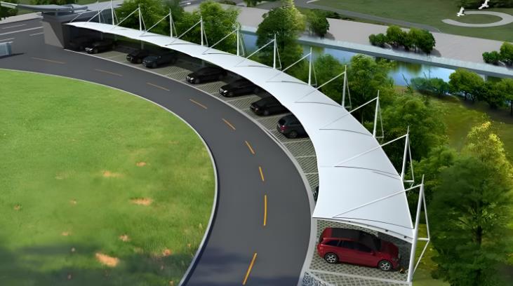 一 膜結(jié)構(gòu)雨棚特點(diǎn)和優(yōu)勢(shì)主要體現(xiàn)在造型美觀,自潔性強(qiáng),輕便耐用,施工便捷,環(huán)保節(jié)能。膜材具有良好的可塑性,可設(shè)計(jì)出各種獨(dú)特的造型,如曲線形、球形、錐形等,為建筑增添藝術(shù)美感。膜材料透光率可達(dá)30%,在陽光下不會(huì)變黃或霧化,可實(shí)現(xiàn)自然采光,降低白天照明能耗,同時(shí)提供柔和均勻的光線。膜材料表面防護(hù)涂層如聚氟乙烯等,有著不發(fā)粘的特性,灰塵等污染物可依靠雨水自然沖洗達(dá)到自潔效果,保持雨棚外觀整潔。膜材重量輕,高強(qiáng)度膜材與張拉技術(shù)應(yīng)用減少了雨棚整體重量,使膜結(jié)構(gòu)雨棚抵御風(fēng)雨能力強(qiáng),對(duì)支撐結(jié)構(gòu)要求較低,且高強(qiáng)度膜材配合合理的結(jié)構(gòu)設(shè)計(jì),使其能抵御多種惡劣天氣,使用年限可達(dá)25年以上,膜材強(qiáng)度是普通玻璃的250-300倍,部分采用永久性膜材的車棚可使用三、四十年。相比傳統(tǒng)建筑雨棚,我們的膜材和鋼結(jié)構(gòu)在工廠預(yù)制,縮短工期,現(xiàn)場(chǎng)安裝速度快,施工周期短,對(duì)周圍環(huán)境影響小。同等大小的建筑,采用膜結(jié)構(gòu)成本只相當(dāng)于傳統(tǒng)建筑的二分之一或更少,短期應(yīng)用的大跨度建筑時(shí)更經(jīng)濟(jì)。且膜結(jié)構(gòu)還具有良好的隔熱性能,可減少能源消耗,部分設(shè)計(jì)還可利用太陽能發(fā)電。