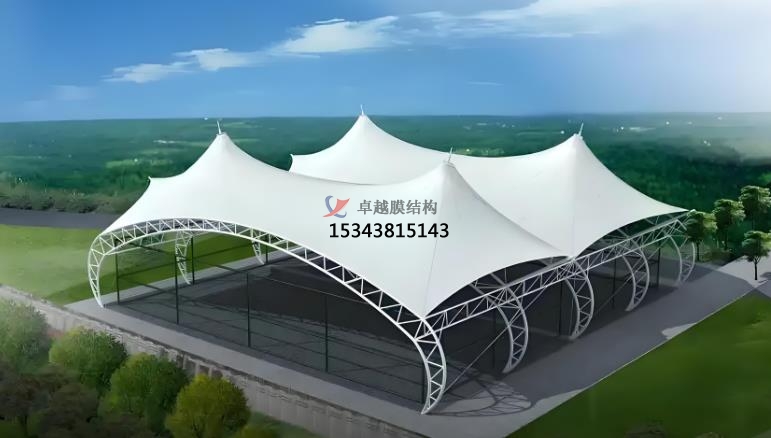 三 膜結(jié)構(gòu)雨棚的應(yīng)用領(lǐng)域:商業(yè)領(lǐng)域,交通領(lǐng)域,體育領(lǐng)域,景觀領(lǐng)域。商業(yè)領(lǐng)域,商場(chǎng)、購物中心、商業(yè)街等的入口、廣場(chǎng)、停車場(chǎng)等位置,可提供遮陽避雨的空間,同時(shí)增加空間利用率,其新穎的造型設(shè)計(jì)成為景觀亮點(diǎn)可吸引顧客,提升商業(yè)氛圍。交通領(lǐng)域,在機(jī)場(chǎng)、火車站的候車廳,高速公路服務(wù)區(qū)、收費(fèi)站、公交站臺(tái)等地方,能為旅客提供舒適的候車環(huán)境。體育領(lǐng)域,大型體育館以及體育看臺(tái)常采用膜結(jié)構(gòu)雨棚,其大跨度特性可滿足視野寬闊無結(jié)構(gòu)遮擋的要求,且膜材透光性可使白天室內(nèi)達(dá)到和室外幾乎一樣的自然效果,體育館、體育場(chǎng)、游泳館等體育場(chǎng)館的入口、看臺(tái)、休息區(qū)等,可保護(hù)觀眾和運(yùn)動(dòng)員免受風(fēng)雨侵襲,增強(qiáng)場(chǎng)館的整體美觀度。景觀領(lǐng)域,公園、廣場(chǎng)、花園、景區(qū)等地方,作為景觀小品或休息設(shè)施,為人們提供休息、觀賞的空間,與自然環(huán)境相融合,增添景觀的現(xiàn)代感,膜結(jié)構(gòu)雨棚與周圍環(huán)境融為一體可創(chuàng)造出浪漫溫馨的空間,在夜間彩燈映射下形成絢麗繽紛的景觀。工業(yè)領(lǐng)域,膜結(jié)構(gòu)廠房具有結(jié)構(gòu)輕便、抗震性好等特點(diǎn),廣泛應(yīng)用于各類工廠,也可用于一些倉庫、污水處理設(shè)施等的覆蓋。