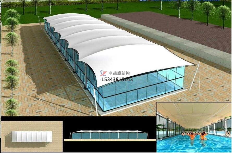 游泳館膜結(jié)構(gòu)是一種適用于大型游泳館建造的先進(jìn)技術(shù),通?;阡摻Y(jié)構(gòu)或光鋼結(jié)構(gòu)框架等穩(wěn)定型構(gòu)件,采用高強(qiáng)度、高韌性的PVDF膜或PTFE膜作來覆蓋整個館內(nèi)空間,并形成周邊固定結(jié)構(gòu)的耐候和保護(hù)部件所構(gòu)成的一種膜形結(jié)構(gòu)體系。