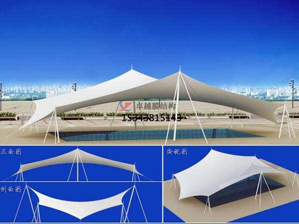 一個(gè)城市的中心區(qū)反映一個(gè)城市的地理風(fēng)貌和民族風(fēng)情,同時(shí),也是一個(gè)城市文化發(fā)展程度的標(biāo)志。而景觀設(shè)計(jì)要求其具有廣泛的可讀性、雅俗共賞,既有超凡脫俗的藝術(shù)價(jià)值,又能使大眾喜聞樂見與大眾息息相通。膜結(jié)構(gòu)以其輕盈飄逸的造型、柔美并帶有力量的曲線和大跨度和大空間的鮮明個(gè)性和標(biāo)識性,應(yīng)用于城市小品設(shè)計(jì)中。