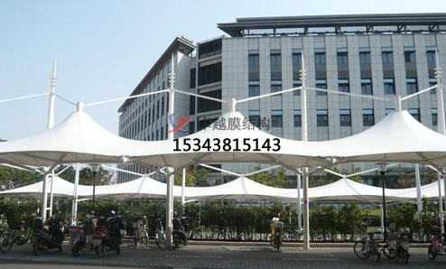 自行車棚施工時(shí)關(guān)鍵的是在薄膜曲面內(nèi)施加初期張力。如果初期張力達(dá)不到設(shè)計(jì)要求,不但會(huì)產(chǎn)生松馳和皺折,且其剛度不能夠抵御外荷載,會(huì)產(chǎn)生過(guò)木變形,影響結(jié)構(gòu)正常使用。