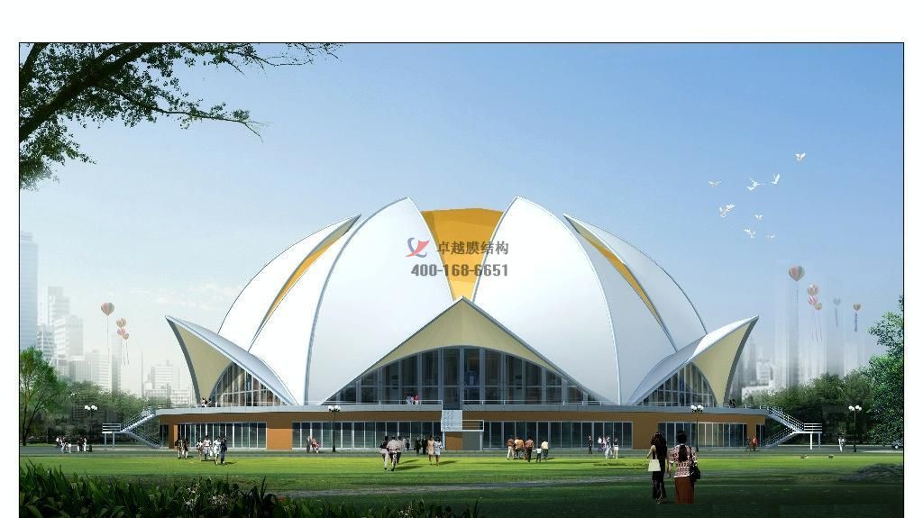 膜結(jié)構(gòu)景觀造型優(yōu)美、富有時(shí)代氣息:?