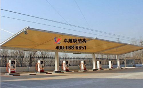 膜結(jié)構充電站樁車棚設計、施工項目,效果及簡介如下: