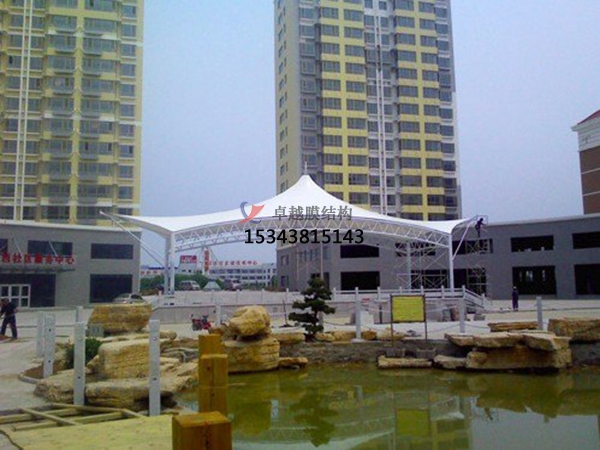 4、準(zhǔn)備工作就緒以后,起重機(jī)械,起重和對(duì)角線做臨時(shí)固定的點(diǎn)。逐步平衡張力調(diào)整,對(duì)膜表面張力。應(yīng)用過(guò)程中張力非常重要,如果不足或過(guò)度自負(fù),很可能導(dǎo)致膜結(jié)構(gòu)工程的崩潰或摧毀,因此希望膜結(jié)構(gòu)在這段準(zhǔn)備更充分。