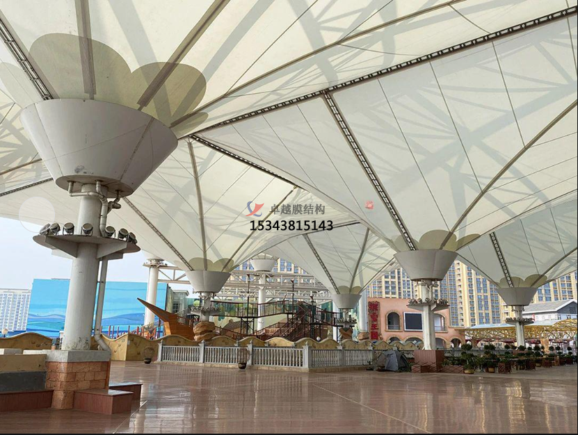 在景觀游樂園中,PTFE膜通常用于建造各種形式的遮陽(yáng)篷、游樂設(shè)施覆蓋物等。它們不僅增加了視覺吸引力,還為游客提供了防曬和防雨的保護(hù)。該材料的抗污性和自潔能力確保即使在戶外條件下也能長(zhǎng)時(shí)間保持干凈和美觀。