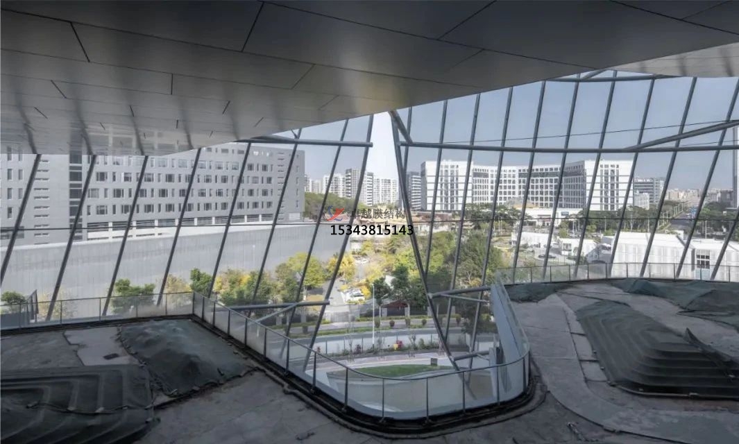 該項目占地面積1.5萬平方米(約16.15萬平方英尺),總建筑面積為6.1萬平方米(約65.66萬平方英尺)。它采用星形布局,從中央中庭向六個有機分支伸出六條支臂。半透明的PTFE材質(zhì)薄膜覆蓋在外部,與建筑物保持一定的距離,不僅能夠減輕日照強度,還可以在炎熱的季節(jié)為建筑物提供通風(fēng)。