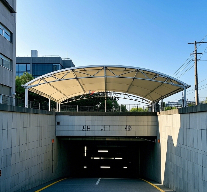 在現(xiàn)代城市建設(shè)中,地下車(chē)庫(kù)作為不可或缺的基礎(chǔ)設(shè)施,其出入口的防護(hù)設(shè)施至關(guān)重要。膜結(jié)構(gòu)雨棚以其共同的優(yōu)勢(shì),成為地下車(chē)庫(kù)出入口防護(hù)的理想挑選,為車(chē)輛和行人供給了牢靠的遮蓋,一起也為修建增加了共同的魅力。