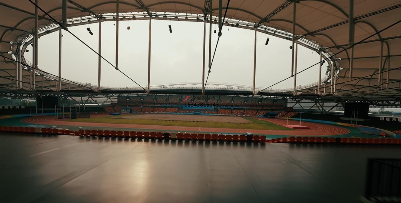 球場使用膜結(jié)構(gòu)頂棚,不僅安全防火還使用壽命長。若使用PVDF膜材,它具有良好的耐候性、耐高溫性和顏色持久性等特點,同時防火難燃,自潔性好,使用壽命長達(dá)10年;若使用PTFE膜材,它的耐候性和自潔性比PVDF膜更好,使用壽命長達(dá)15年之久。