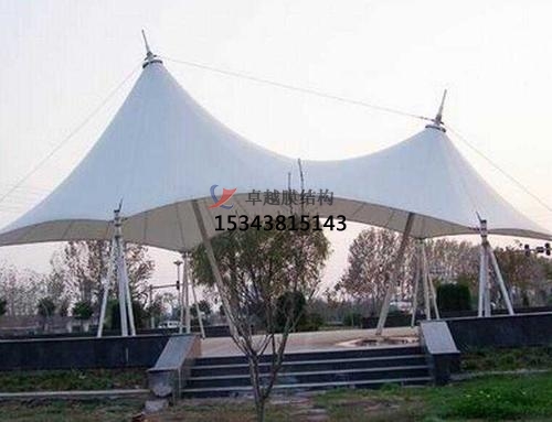 ?。?)加面層的PVC膜材:在PVC膜材表面涂覆聚偏氟乙烯或聚氟乙烯,各種性能優(yōu)于純PVC膜材,應(yīng)用廣泛,價格相應(yīng)高于純PVC膜材。張拉膜景觀,又叫張拉張拉膜景觀(TensionedMembranestructure),是以建筑織物,即膜材料為張拉主體,與支撐構(gòu)件或拉索共同組成的結(jié)構(gòu)體系,它以其新穎的建筑造型,良好的受力特點,成為大跨度空間結(jié)構(gòu)的主要形式之一。膜材料是指以聚酯纖維基布或PVDF、PVF、PTFE等不同的表面涂層,配以的PVC組成的具有穩(wěn)定的形狀,并可承受載荷的建筑紡織品。它的壽命因不同的表面涂層而異,一般可達(dá)成10—25年。