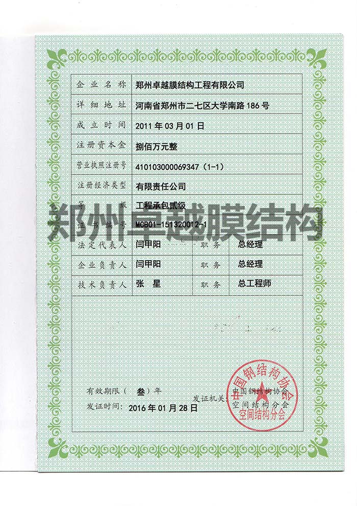 膜結(jié)構(gòu)承包二級資質(zhì)