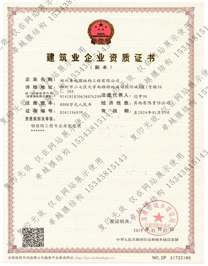 膜結(jié)構(gòu)制作二級資質(zhì)