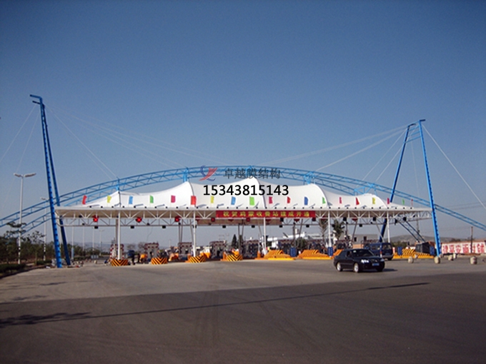 5、結(jié)構(gòu)穩(wěn)定,張拉膜結(jié)構(gòu)不是剛性的,其在風(fēng)荷載或雪荷載的作用下會(huì)產(chǎn)生變形。膜結(jié)構(gòu)通過變形來適應(yīng)外荷載,在此過程中荷載作用方向上的膜面曲率半徑會(huì)減小,直至能更有效抵抗該荷載。鄭州卓越膜結(jié)構(gòu)工程有限公司專業(yè)做膜結(jié)構(gòu)收費(fèi)站。