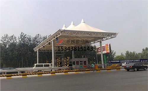 整個收費站的建筑面積達到了2000多平方米,由兩個巨大的膜結構組成,每個膜結構的尺寸為15mx35m。在收費站的使用過程中,膜結構能夠承受大量的車輛和行人通行,保證收費站的正常使用。
