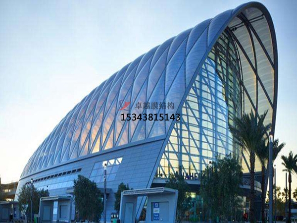 相比來說,ETFE膜比PTFE膜具有更高的透光度和更好的抗化學(xué)能力,能抵抗多數(shù)的酸和堿;ETFE膜抗自然老化能力強(qiáng)并較好的加工性及機(jī)械性,由于ETFE膜是直接由塑料成膜,沒有基材,所以其抗拉強(qiáng)度、抗撕裂強(qiáng)度不如PTFE膜,而且一次性投資高,使用過程中維護(hù)費(fèi)用高,對銳利的物體抵抗能力差。