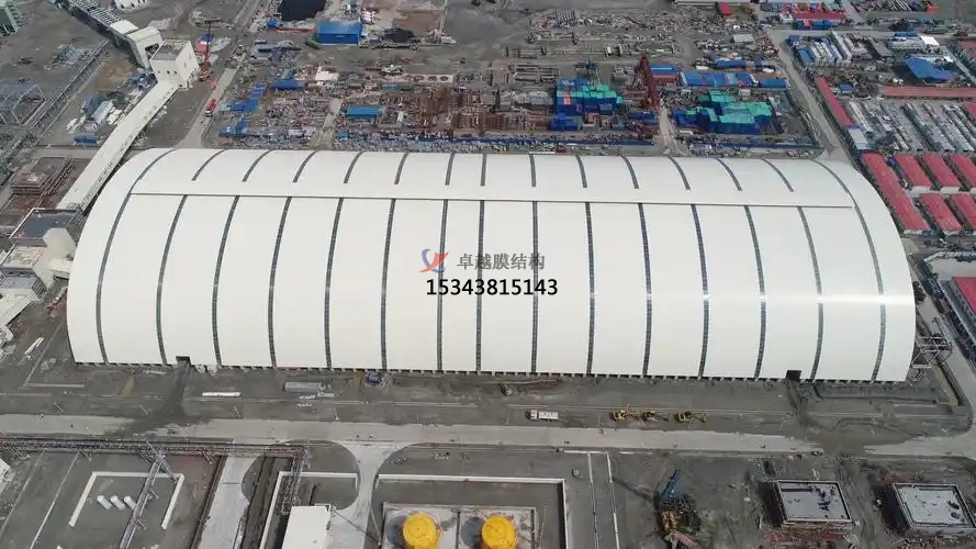 大跨度與靈活性:膜結(jié)構(gòu)煤棚能夠輕松跨越數(shù)十米甚至上百米的跨度,無需中間支撐,為大型煤炭堆場提供了廣闊的無障礙作業(yè)空間。其結(jié)構(gòu)靈活,可根據(jù)場地大小和形狀進(jìn)行定制化設(shè)計。