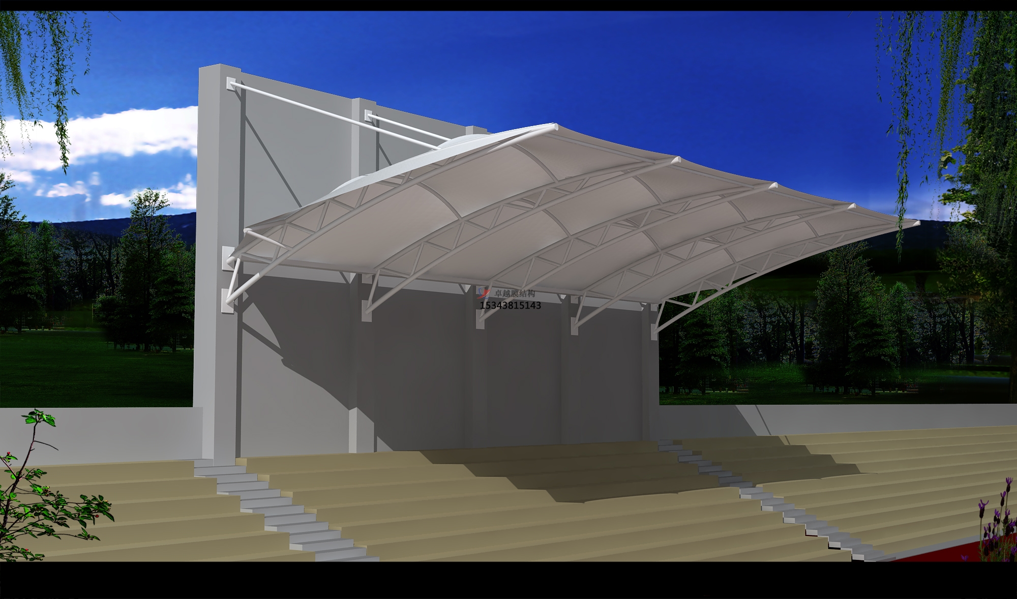 1、千陽縣職業(yè)中專膜結(jié)構(gòu)看臺(tái)雨篷/主席臺(tái)/舞臺(tái)安裝雨棚