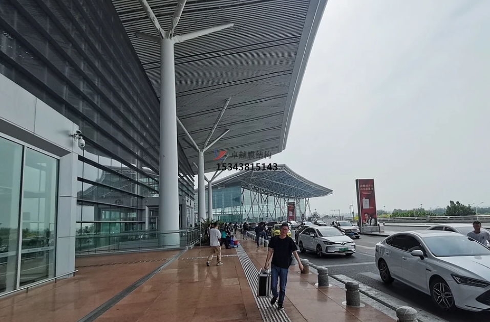 機(jī)場(chǎng)膜結(jié)構(gòu)多用于機(jī)場(chǎng)航站樓的雨棚、采光帶、室內(nèi)吊頂?shù)染植课恢?,為機(jī)場(chǎng)建筑增添現(xiàn)代感和藝術(shù)氣息。