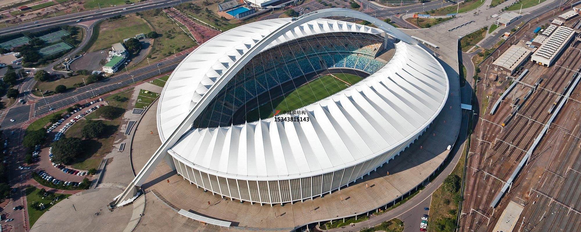 索膜結構體育場館國內(nèi)典型案例:國內(nèi)典型案例有無錫奧體中心體育場、臨沂奧體中心體育場和??谖逶春芋w育場等。無錫奧體中心體育場結構是外圈鋼結構桁架+內(nèi)圈30米深索膜屋面,128根徑向索+6根環(huán)向索形成四心擬合圓形屋蓋(長軸246米,短軸185.2米),在2025年6月索網(wǎng)結構提升完成,計劃2026年建成,其設計意象是64榀外傾桁架勾勒“白鷺起飛”造型,為國內(nèi)最輕盈鋼構屋蓋之一;臨沂奧體中心體育場采用輪輻式單層索網(wǎng),跨度達244.6米(全球同類結構最大),40根徑向索連接內(nèi)外環(huán),結合PTFE膜材覆蓋;海口五源河體育場采用非對稱設計,270米跨度半月形索膜罩棚,內(nèi)設雙抗壓環(huán)+單抗拉環(huán)結構。